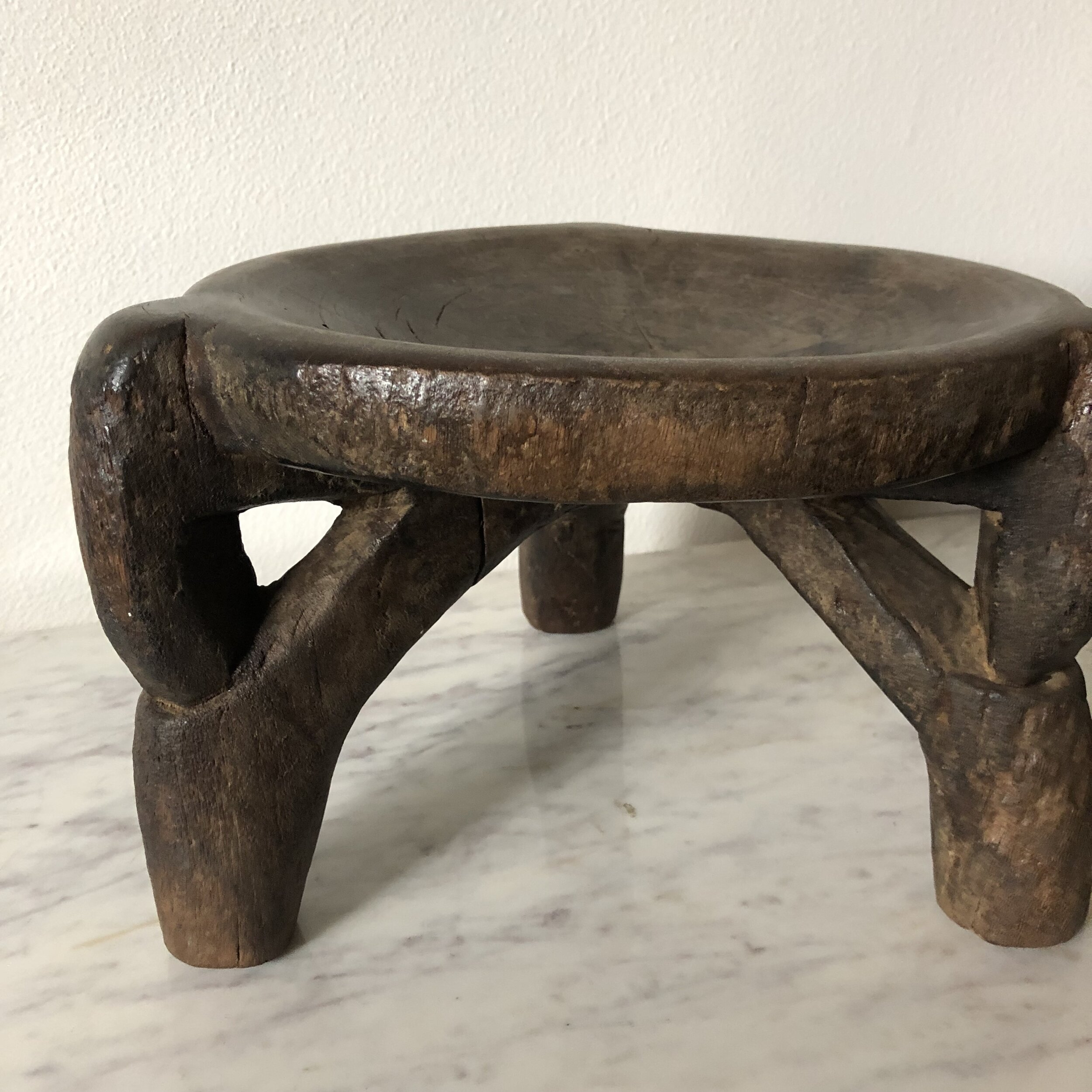 Vintage hand-carved wood stool made by the Gogo people in Tanzania. Carved from a single piece of hard, dense wood.